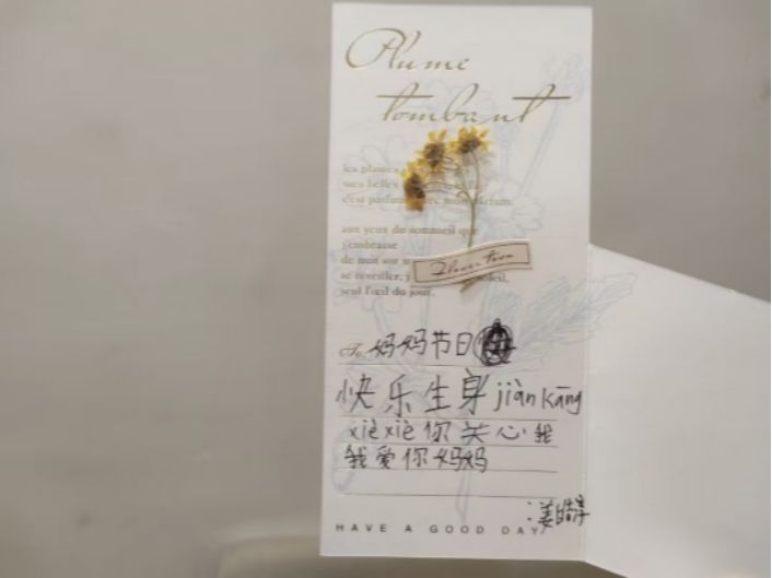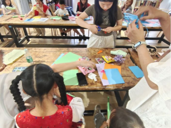 “手作传情,纸笔达意”环节中,志愿者引导小朋友们为妈妈制作纸花、贺卡等手工礼物,并在贺卡上写以诚挚的节日祝福。在志愿者的帮助下,小朋友们用双手表达感恩之情,对妈妈的爱意漫出笔尖。