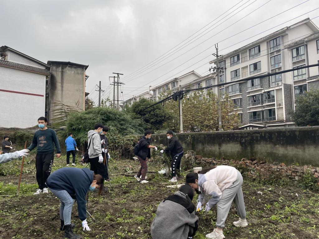 11月4日中午,在学院老师的带领下,支部同志拿着工具来到捡种地,该地块之前因缺乏清晰的管理划分,周边居民随意在地里搭栅栏种蔬果,并将砂石、枯枝、杂物任意堆砌在田中,田间杂乱无章。党员以支部为单位,分工有序地进行拆栏、搬石头、除草、刨坑……每个人的汗水挂满了脸颊、浸透了衣裳。但大家并没有因此抱怨或是放弃,而是相互打气、勉励坚持。
