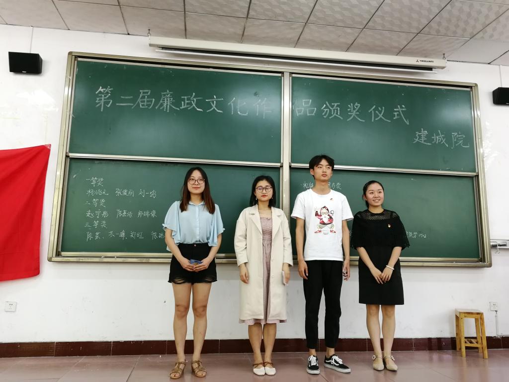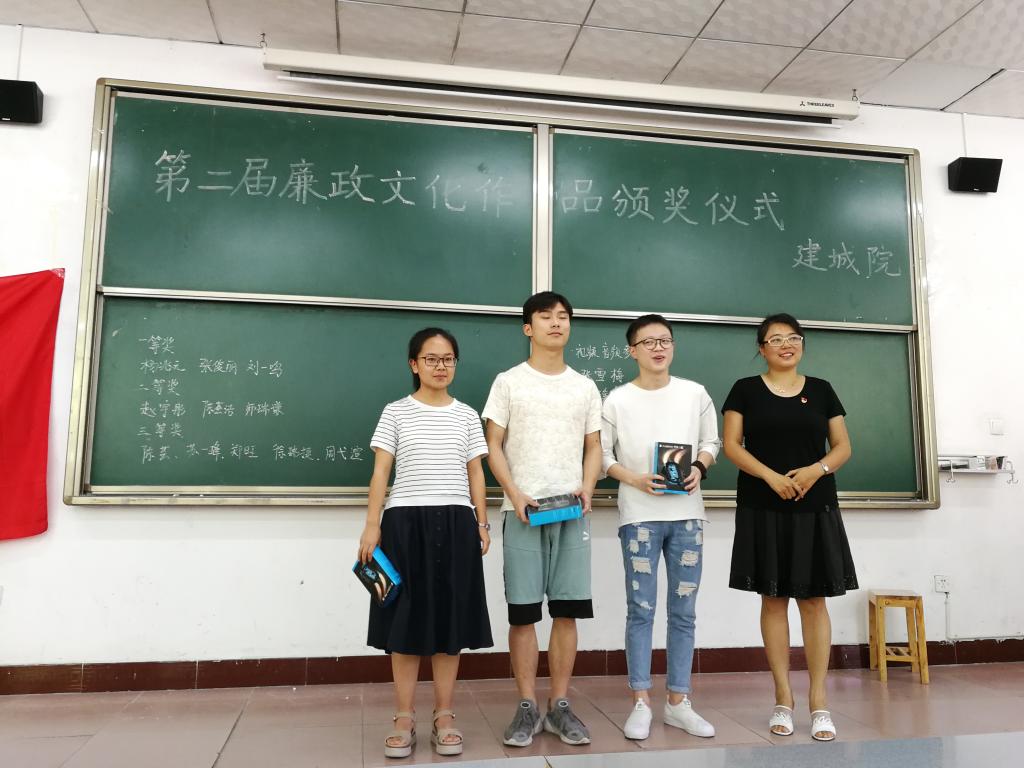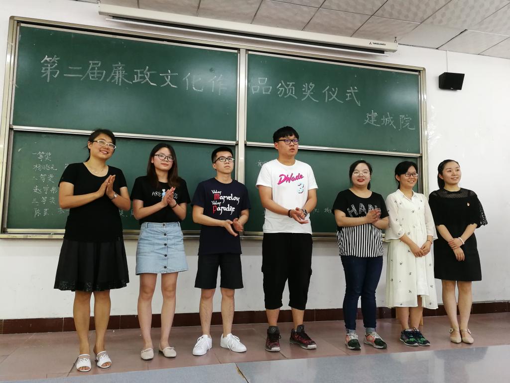 为牢固树立“四个意识”,增强“四个自信”,引导师生在新时代提振精气神、挥洒正能量,英国正版365官方网站积极筹备,指导学生踊跃进行廉政文化学习与艺术创作。历时一月,具有浓郁建城特色的作品新鲜出炉。2018年6月5日下午,我院第二届廉政文化作品颁奖座谈在1117召开。院党委副书记庄萍萍、党委办公室全体老师、党建办公室、所有学生党员、廉政文化作品获奖学生到场参加。