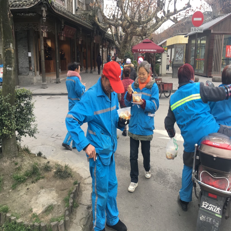 上午9点左右,同学们来到事先联系好的餐厅,开始包饺子,为环卫工人们准备午餐。为了保证饺子的新鲜度与温度,同学们体贴地将1100个热腾腾的饺子分12:10和12:30两批次送到环卫工人工作的地方去,并给每个人献上了精心准备的手套和护手霜。环卫工人们脸上写满了幸福和满足,连连道谢。这种幸福感源于被尊重、被关爱,同学们的幸福来自被肯定、被信任。