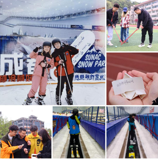 都江堰校区绿茵球场上,在院学生会体育部的组织下,各团支部成员通过小游戏“冬奥冻冻”与模拟冬奥项目“冰球对抗”,学习冬奥运动员的体育精神,亲身体验冰雪运动项目,享受冰雪运动的乐趣。以寓教于乐的形式,让奥运健儿奋勇争先的拼搏精神为青春注入前进动力。另外,我们还邀请了四川农业大学滑雪校队的几位同学,为我们分享滑雪相关的技巧与体验,让大家更近一步了解正式冬奥项目,更深刻的感悟冬奥运动员自强不息的精神。
