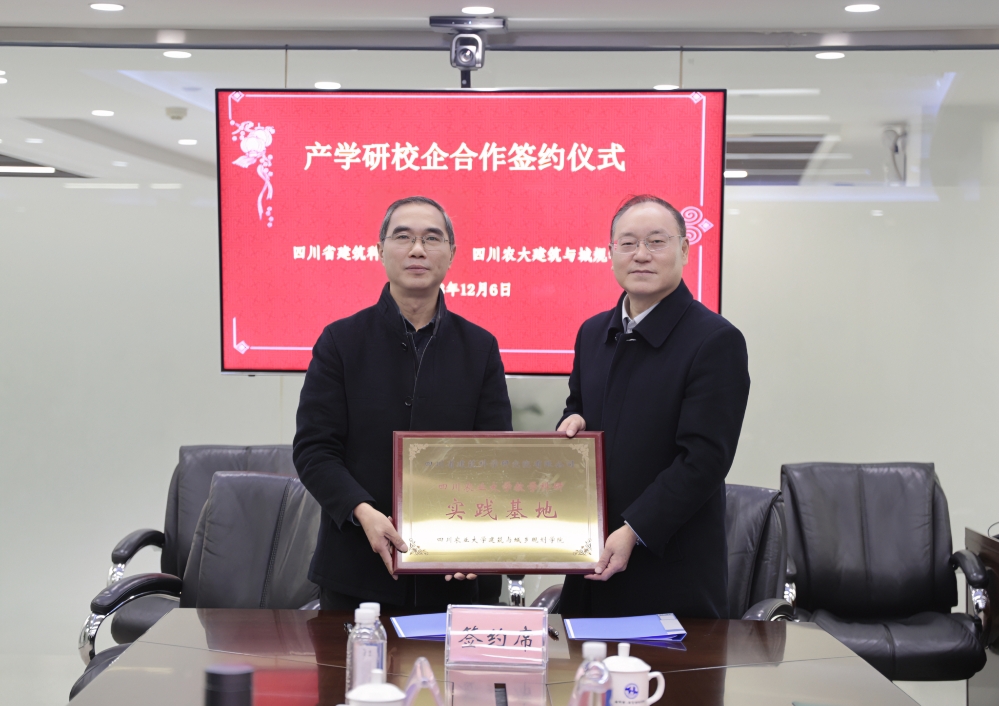 为进一步深入推进院企合作基地建设,在前期深入交流的基础上,12月6日下午,学院与四川省建筑科学研究院合作签字仪式暨交流会在省建筑科学研究院举行。省建筑科学研究院院长兼党委书记王德华、党委副书记曾文鹏、人力资源部部长薛东明、智能建造事业部总经理杨晓娇,学院党委书记申琼教授、建设管理系主任甘露教授、系副主任江文副教授、行政办主任张敏老师等出席此次签约仪式。申琼与王德华代表双方签订了“教学科研实践基地”协议,并为基地授牌。