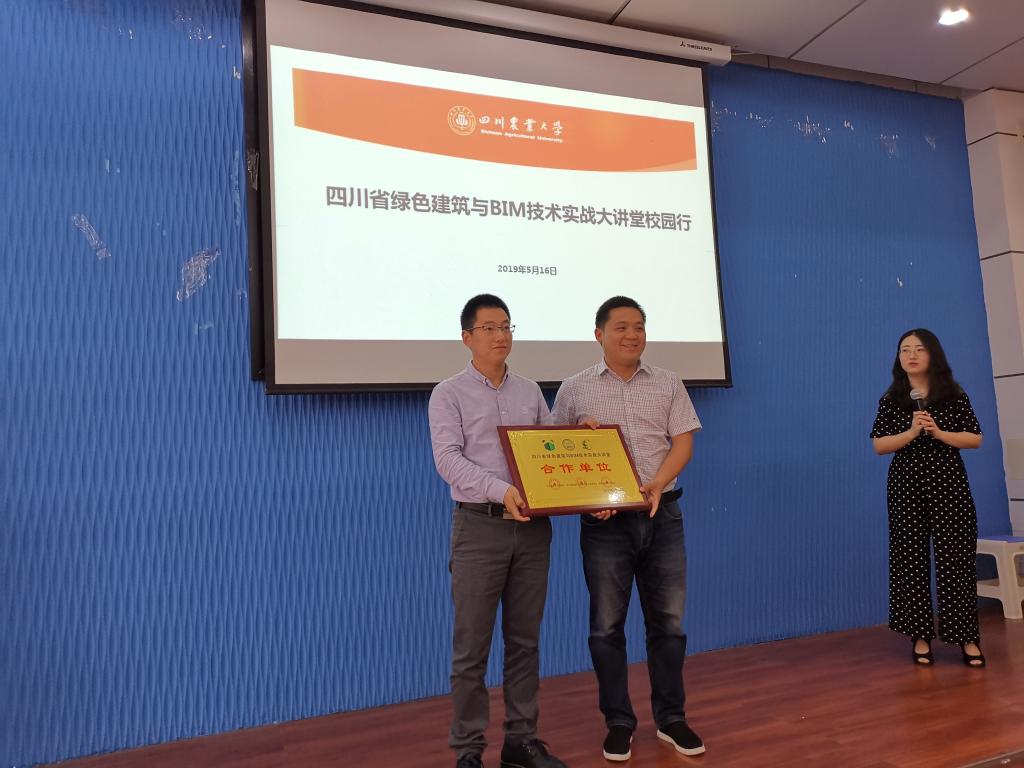 活动现场,曹迎副院长首先对冮军博士一行的到来表示了热烈欢迎。冮军代表四川省建设科技协会向我院授予了“四川省绿色建筑与BIM技术实战大讲堂合作单位”。随后,冮军博士和黄元祥教授级高级工程师分别做了题为《BIM应用现状、价值与趋势》、《施工企业BIM应用现状、趋势与实战》的主题报告,用大量的数据与丰富的案例为老师和同学们分享了川内高等院校和企业工程技术人员在应用绿色建筑与BIM技术中的实战经验,这对于学院下一步在绿色建筑及BIM技术的人才培养、社会服务、科研成果转换等方面有着积极的启示与推动作用。